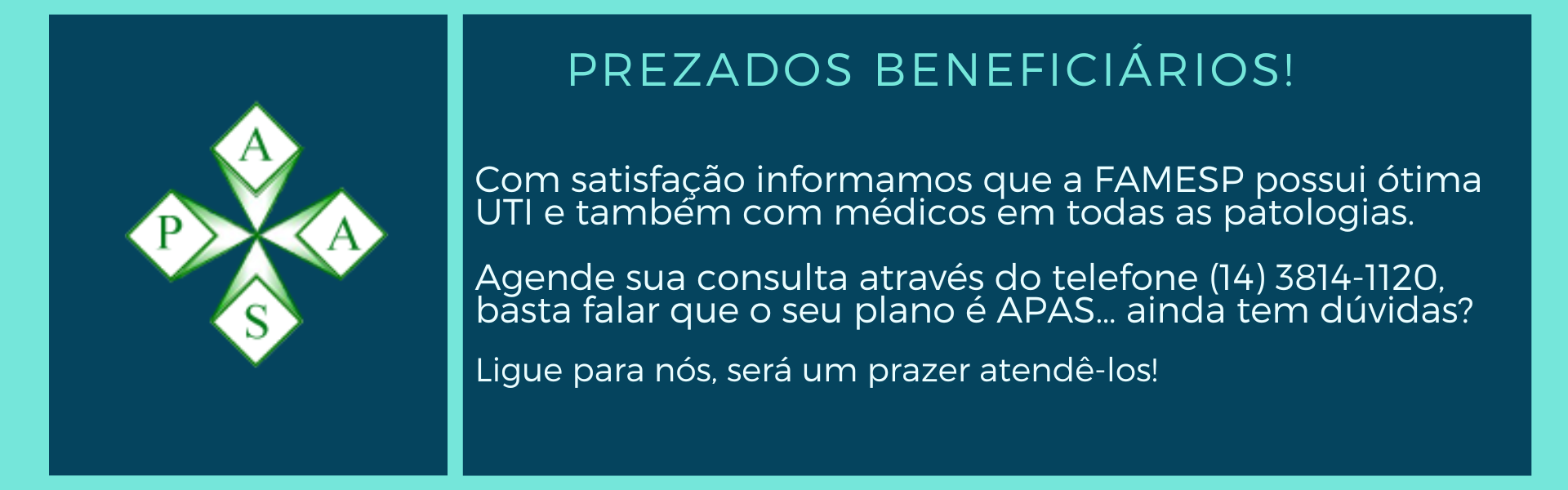 É com muito orgulho que me dirijo a você, Associado, por meio deste novo canal de comunicação entre a APAS e todos os usuários do sistema de saúde em auxilio à família policial-militar.